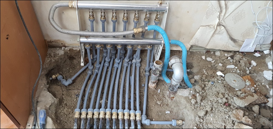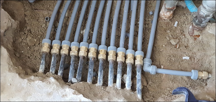 막무가내로 한번만 더해보고 않되면 배관공사를 하겠다하여 하는 수없이 시작하기로 하고 우선은 분배기교체부터 들어갑니다