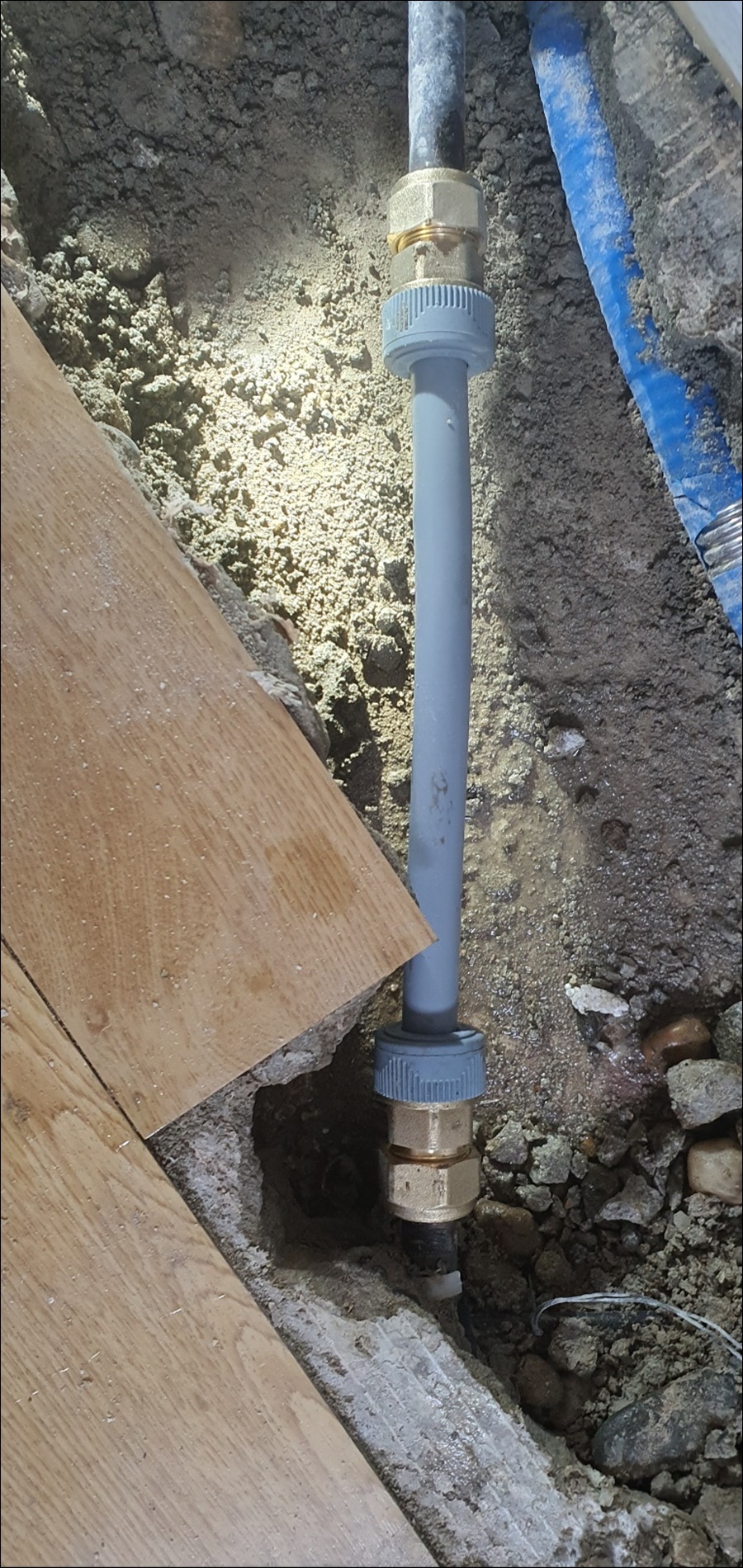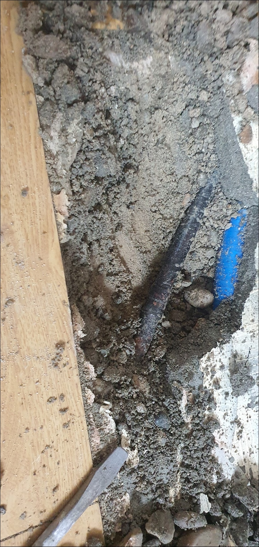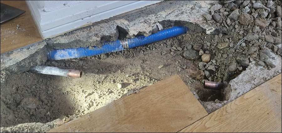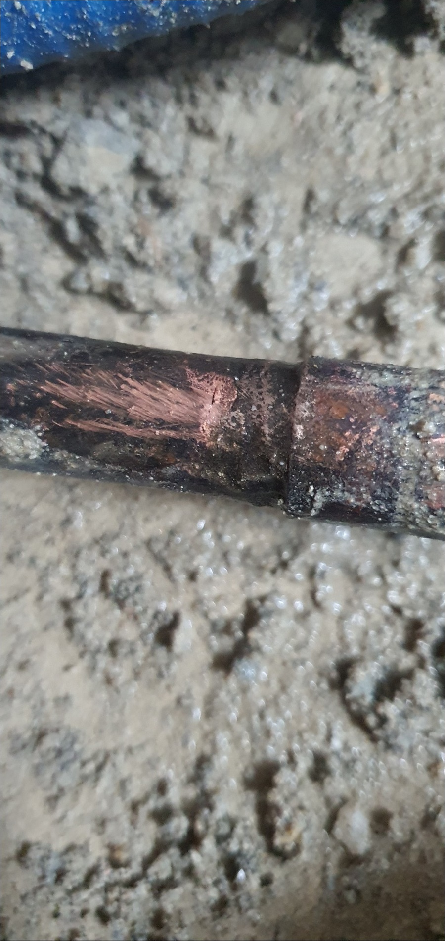 다시 청음탐지로 정확한 누수부위를 특정하고 바닥을 굴착해보니 동관인데 이미 용접으로 수리를 여러번이나 했네요ㅠ~ㅠ~