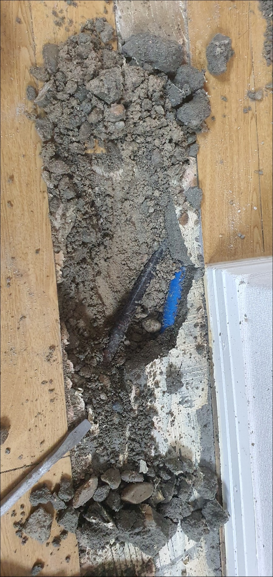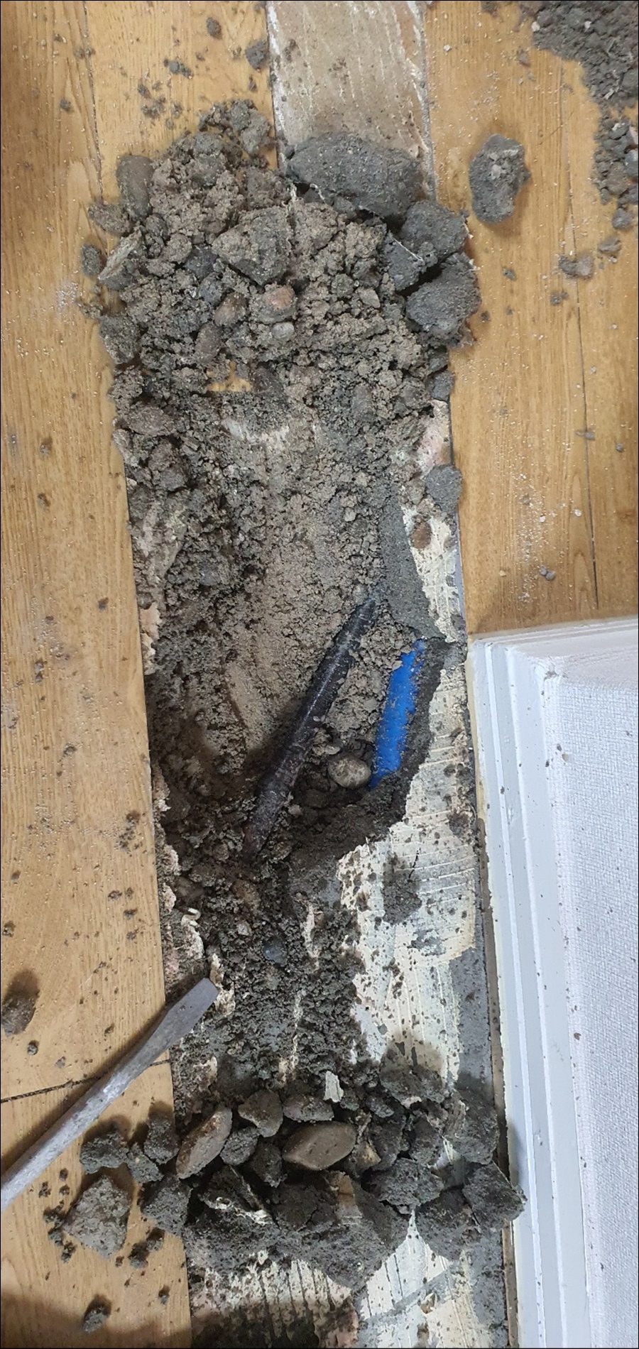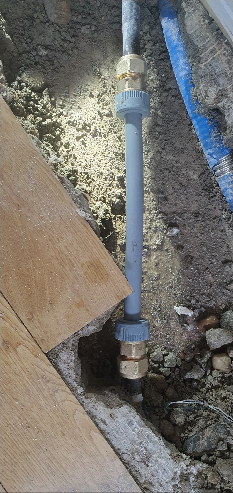다시 청음탐지로 정확한 누수부위를 특정하고 바닥을 굴착해보니 동관인데 이미 용접으로 수리를 여러번이나 했네요ㅠ~ㅠ~